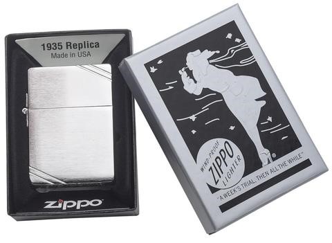 Зажигалка ZIPPO 1935 Replica Brushed Chrome 1935 от официального дилера Zippo в Нижнем Новгороде. Вы можете дополнительно заказать гравировку, которая подчеркнет Вашу оригинальность и придаст памятность статусному подарку.